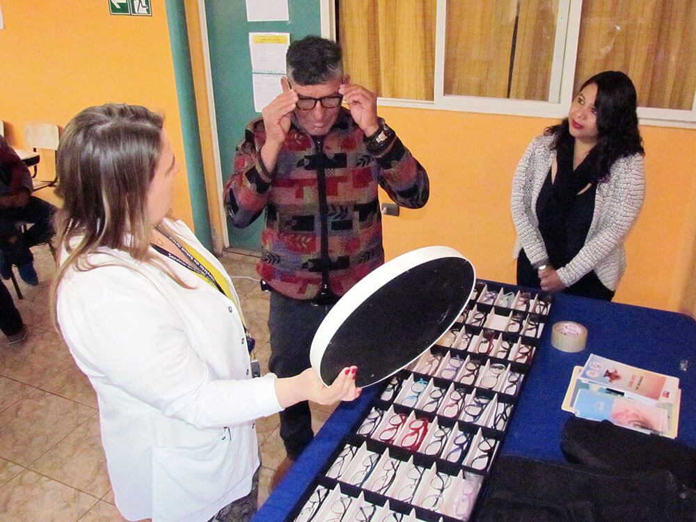 Arica, 10 de octubre de 2019. Con motivo del Día Mundial de la Salud Visual, la unidad de atención primaria oftalmológica (UAPO) del Servicio de Salud Arica (SSA) realizó un operativo para las personas en situación de calle del programa de Hospedería Noche Digna de la Secretaría Regional Ministerial (SEREMI) de Desarrollo Social y Familia con el propósito de darles acceso gratuito a lentes ópticos.